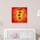 Happy Chinese New Year Lanterns and Dragons on Auspicious Red and Gold Background Poster