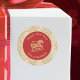These festive stickers commemorate the Chinese Lunar New Year of 2026, which is the zodiac Year of the Horse. Celebrate the prosperity and good fortune with these festive stickers that feature text and a scrollwork horse and clouds in gold on a red background. The text can be edited. It says "Happy New Year" at the top and "Year of the Horse" at the bottom. The outer edge features an exquisite gold, faux pearl, and cream damask pattern.