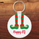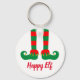 Happy Christmas elf keychain with custom text. Personalised Holiday party favour for kid's and adults. Cute xmas design with elf's feet.
