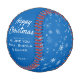 Happy Christmas Script Blue Snowflake Pattern Baseball. Customise the ball with your names and year and make a Christmas gift for a baseball player or fan.
