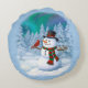 Happy Christmas Snowman & Birds Winter Scene Round Cushion