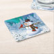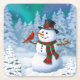 Happy Christmas Snowman & Birds Winter Scene Square Paper Coaster
