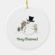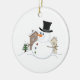 Happy Christmas Snowman Illustration Ceramic Tree Decoration