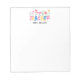 Brighten a teacher's day with this happy, colorful flowers notepad where each letter of "teacher" blooms with a unique flower accent in pink, yellow, blue, and green. The vibrant, playful design adds cheerful flair to notes, lists, and reminders. Perfect for appreciation gifts, back-to-school, or everyday classroom fun.