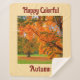 Pretty, Sherpa blanket with colourful Autumn scene, is for warmth and comfort as the weather grows colder. With message, "Happy Colourful Autumn", this makes a great throw blanket for a couch, recliner or bed. Blanket is 50" by 60" and machine washable and tumble dry on low. Use yourself, also makes a great gift too!