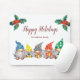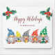holiday mouse pad with colourful gnomes in various sizes and colours with elegant script "Happy Holidays" along with your name in sans serif font below. Make it a perfect gift for your family or friends. Check our store for more items from this collection.