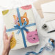 Happy Colourful kawaii Cartoon Cats pattern Wrapping Paper