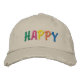 HAPPY Colourful Print Embroidered Hat