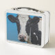 This whimsical cow portrait, with its charming "Claymation" style, is guaranteed to bring a smile to your face! Against a bright blue country sky, this quirky black and white Holstein dairy cow looks out with curiosity, as if she's pondering her surroundings—or maybe just wondering if you brought snacks.