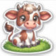 This sticker shows a brown-and-white cow, sitting down in a grassy pasture, smiing. Perfect for nurseries, lunch boxes, mugs, laptops, bicycles or scooters...just about any place that is fun, especially places kids love. Available in many sizes.