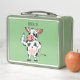 This happy cow is holding a babies bottle. Drawn in fun cartoon style.