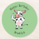 This happy cow is holding a babies bottle. Drawn in fun cartoon style.