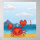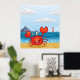 Bring the joy of the coast into your home with this delightful cartoon crab poster. The high-quality print showcases a cheerful, bright red crab standing prominently on a sun-drenched beach, with a striking blue ocean and a classic red and white lighthouse forming the nautical backdrop. This vibrant and cute marine animal artwork is ideal for decorating a child's bedroom, a beach house, a bathroom with a seaside theme, or any space that needs a pop of colour and a touch of summer fun. This charming design captures the spirit of the ocean and makes an excellent decorative piece for any enthusiast of coastal or sea life creatures.