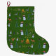 Snowmen, deer and holiday trees on Christmas Stocking.Choose your background color.
