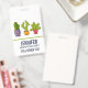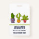 Name badge with a whimsical illustration featuring 3 happy little cacti sitting in their own flower pots. They each have their own unique expressions smiling and looking happy