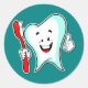 Happy Cute Cartoon Tooth With a Toothbrush Classic Round Sticker