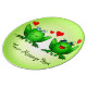 Cute happy green frogs Twitchy and Beulah on a gradient green background with red love hearts. This is a Save the Swamp! product. A portion of proceeds from this plate goes to support wetland conservation and environmental awareness. You can add your own message by replacing the text in the box at right. Use the customise option to change font size, colour or style.