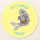 Happy cute harp seal cartoon illustration round paper coaster