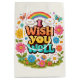 A vibrant design showcases multicolored text surrounded by cheerful flowers and butterflies, enhanced by a whimsical rainbow and smiling clouds