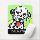 Colourful dog art featuring white Dalmatian with black spots against a light green background and yellow circles