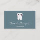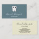 Business cards with a drawing of a big white tooth with a cute kawaii smile and big happy eyes.