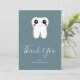 Thank you card with a drawing of a big white tooth with a cute kawaii smile and big happy eyes.