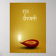 Shubh Diwali Illustration: red diya (a cup-shaped indian oil lamp) with an indian ornamental mandala and the greeting written in Sanskrit.