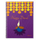 Happy Diwali notebook with clay oil lamp and yellow and orange marigold flower garlands. Designed by Liv