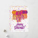 Colourful and personalised Happy Diwali card features purple, pink and gold lanterns with a colourful background. Happy Divali is written at the bottom. One line of text lets you customise your card.