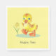 Happy duckling with flower on yellow Napkins. Text ready to be personalised.