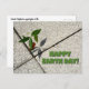 Happy Earth Day and Forever Hopeful despite the odds, a maple tree seedling grows from between concrete slabs casting a shadow over the greeting on this photographic postcard. This Environmental Awareness postcard is ideal for Earth Day postcrossing or to send encouragement in the face of Life's challenges and the fight against the odds. The text is customisable on both front and back. This is original photography by JLW_PHOTOGRAPHY.