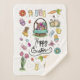 A colourful Easter and Spring design featuring cute bunnies, baby chicks, flowers, eggs, and candy!