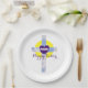 This elegant paper plate features a cross made of a cloudy sky photo along with a royal purple heart with the word RISEN. It's a nice plate for Easter and other spiritual occasions.