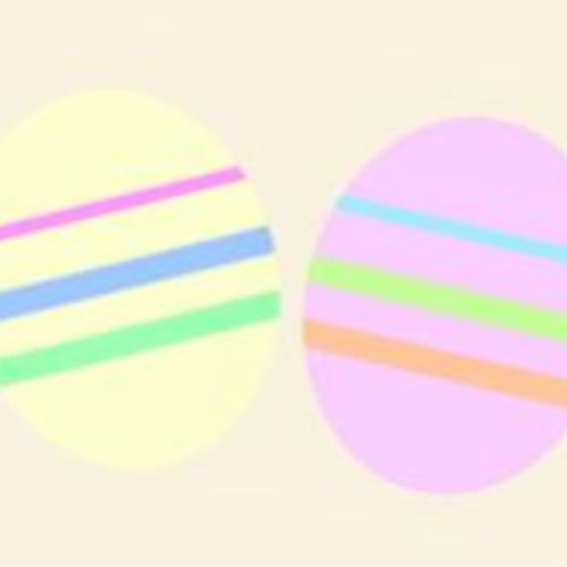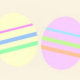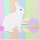 Pretty, simple, and modern design with a cute Easter bunny sitting beside 2 pink and yellow Easter eggs on a pastel striped background. All text is customisable.