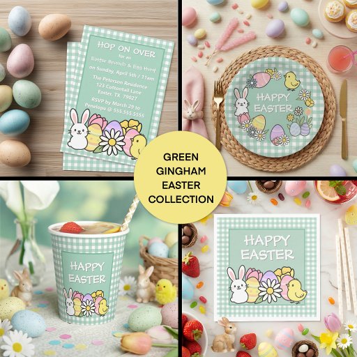 Happy Easter Bunny Chick Eggs Green Gingham T-Shirt