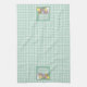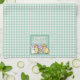 Happy Easter Bunny, Chick, Eggs Green Gingham Tea Towel