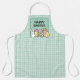Celebrate the sweetness of spring with this Easter Green Gingham Apron from “Plaid Perfection”. Featuring a soft mint green gingham plaid background and an adorable, editable “Happy Easter” design with a bunny, chick, pastel Easter eggs, and spring flowers, this apron brings timeless farmhouse charm to your holiday kitchen. Perfect for Easter baking, brunch hosting, egg decorating, and family gatherings, this festive Easter apron keeps you stylish while protecting your clothes. The classic green checkered pattern adds a fresh cottagecore aesthetic, while the playful spring illustration creates a cheerful focal point that’s perfect for the season. Whether you're: Baking Easter cookies, Hosting Easter brunch, Decorating eggs with the kids, Cooking Sunday dinner, Creating springtime kitchen content, Looking for a unique Easter hostess gift…this mint green gingham apron is both functional and beautifully seasonal. The soft pastel green plaid pairs effortlessly with white kitchens, rustic wood accents, farmhouse décor, and spring table settings. It coordinates seamlessly with matching mugs, kitchen towels, pillows, gift bags, tissue paper, and other pieces from the Easter Green Gingham Collection for a cohesive holiday look throughout your home. This Easter apron also makes a thoughtful gift for moms, grandmothers, teachers, bakers, hostesses, and anyone who loves decorating for spring holidays. Add it to an Easter gift basket with coordinating items from the Plaid Perfection shop for a beautifully curated seasonal present. Bring classic plaid style and sweet spring charm into your kitchen with this green gingham Easter apron — a must-have accessory for festive farmhouse Easter décor.
