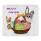 "HAPPY EASTER" BUNNY WITH BASKET AND COLORED EGGS