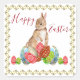 Happy Easter Bunny stickers for labelling and scrapbooking crafts. The illustration has a Bunny sitting on decorative eggs with floral artwork. The TEXT can be easily personalised with your choice of script and formatting.