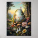 Great Easter Poster with a big easter egg and cute animals like an easter bunny or rabbit. Magical Fantasy Forest Floral Art with flowers and adorable animals. Cute Rabbits on an Easter egg.