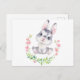 Say Happy Easter with this adorable Easter Bunny postcard. This bunny is a watercolor piece with a watercolor floral head piece.