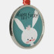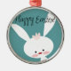 Happy Easter bunny rabbit on blue teal background Metal Tree Decoration