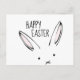 A cute bunny rabbit face illustration adorns this simple Easter postcard, appropriate for children and adults. Text reads, "Happy Easter."