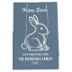 A simple minimalist slate blue and white Happy Easter Bunny Rabbit design for family and friends. The typography text of the design is customisable. You can change the font, font colour, font size, letter spacing and background colour using the Design Tool. The holiday design is yours to customise as you wish.