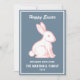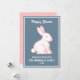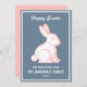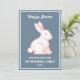 Happy Easter Bunny Rabbit Slate Blue White Pink Holiday Card