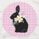 Houndstooth Pattern in Pink & White with black bunny silhouette and spring flowers. Custom HAPPY EASTER, INITIAL in black. Easy to personalise text, text colour, font. Fun Party Decor for ANY Spring or Easter event. Designer, Chic, Preppy, Sweet. Mix and match entire Easter Collection by TMCdesigns.