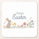 Happy Easter Bunny Wildflowers Cute Kids Holiday Square Paper Coaster