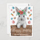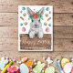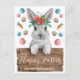 happy easter watercolor painted bunny with wood sign and colorful eggs background Postcard