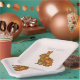 This fun, unique, elegant, colourful, hand drawn design features a chocolate imitation bunny in retro pastel colours and yellow gold lines on pink background. This design is an excellent addition to your Easter decoration and party event.