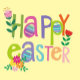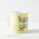 This bright and playful Easter mug features the phrase “HAPPY EASTER” in a rainbow of bold, festive colors. Each letter has its own personality—some patterned like Easter eggs, others accented with sweet spring florals—creating a joyful, celebratory look. The soft yellow background adds warmth and makes the colorful typography pop beautifully.